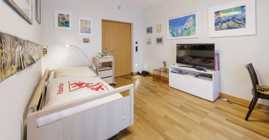 Das Altersheim St. Urban im Winterthurer Stadtteil Seen bietet pflegebedürftigen Menschen ein familiäres Zuhause. In allen Zimmern im St. Urban – ob im Haupthaus oder in den beiden Aussenhäusern des Zentrums Freitag können Sie sich als Einzelperson oder Paar Ihr Zuhause einrichten und ausstatten. Das Haupthaus verfügt insgesamt über 85 Einzelzimmer und Ehepaar-Einheiten. Die hellen und ruhigen Zimmer sind alle mit eigenen barrierefreien Nasszellen ausgestattet und haben einen Balkonzugang. Im Zentrum Freitag sind es 36 Zimmer auf die zwei Häuser Annemarie und Margrit verteilt. Die Einzelzimmer sind entweder mit eigener oder mit geteilter Nasszelle ausgestattet.